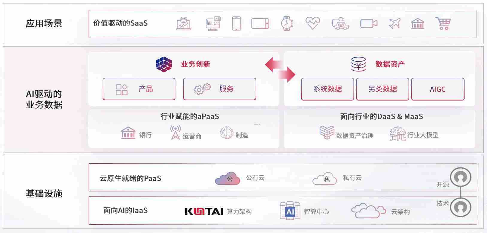 数字时代,,,围绕企业数字化转型的关键要素,,,RB88数码开创性的提出数云融合战略和技术体系框架,,着力在云原生、、、数字原生、、AI原生和信创产业上架构产品和服务能力,,为处在不同数字化转型阶段的快消零售、、、、汽车、、金融、、、、医疗、、、、政企、、、、教育、、、、运营商等行业客户提供泛在的敏捷IT能力和融合的数据驱动能力,,构建跨界融合创新的数字业务场景和新业务模式,,,助力企业级客户建立面向未来的核心能力和竞争优势,,,全面推动社会的数字化、、、智能化转型升级。。